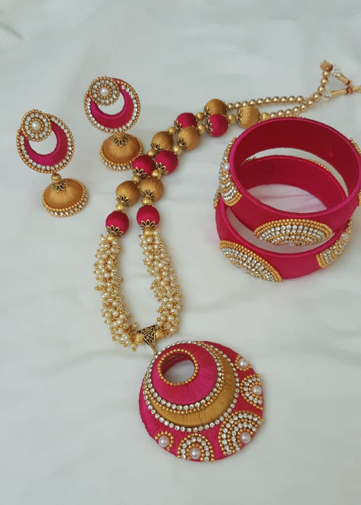 An exquisite necklace, bangles & pendant set made from silk thread, stones & pearls