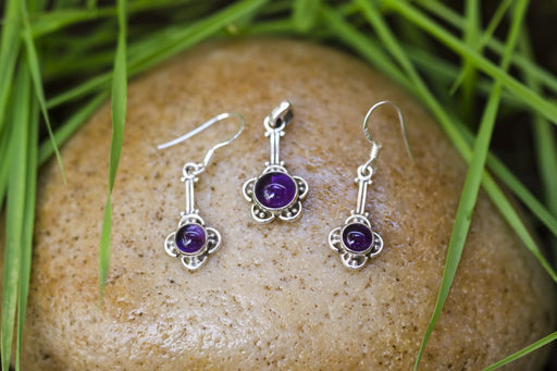 This dark purple coloured stone is incredibly popular for its intense colour. Stone name: Amethyst Metal: 925 sterling silver