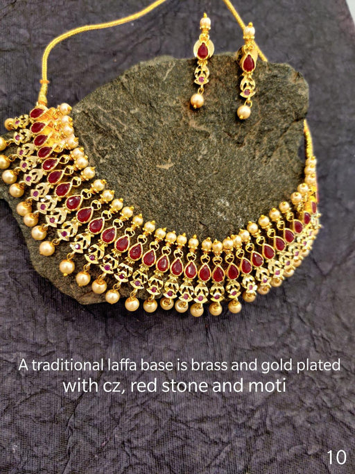 This traditional 'Laffa' is gold plated with CZ, red stone & Pearls CZ - Cubic Zirconia is a diamond alternative with many of the same qualitie...