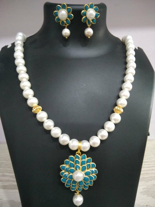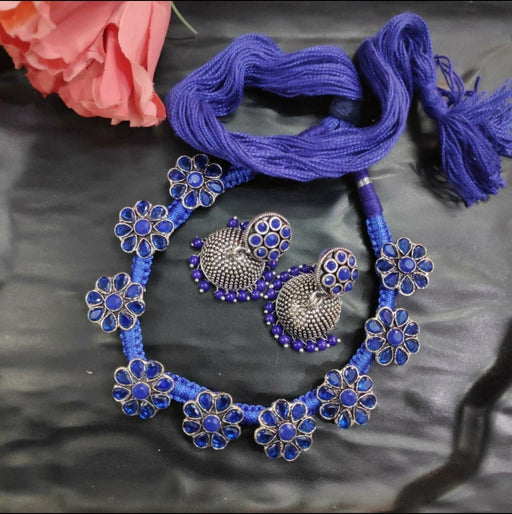 Silk Thread Necklace with antique pendant and silk thread Jhumka with antique stud. Available in Yellow, Green & Blue colours.